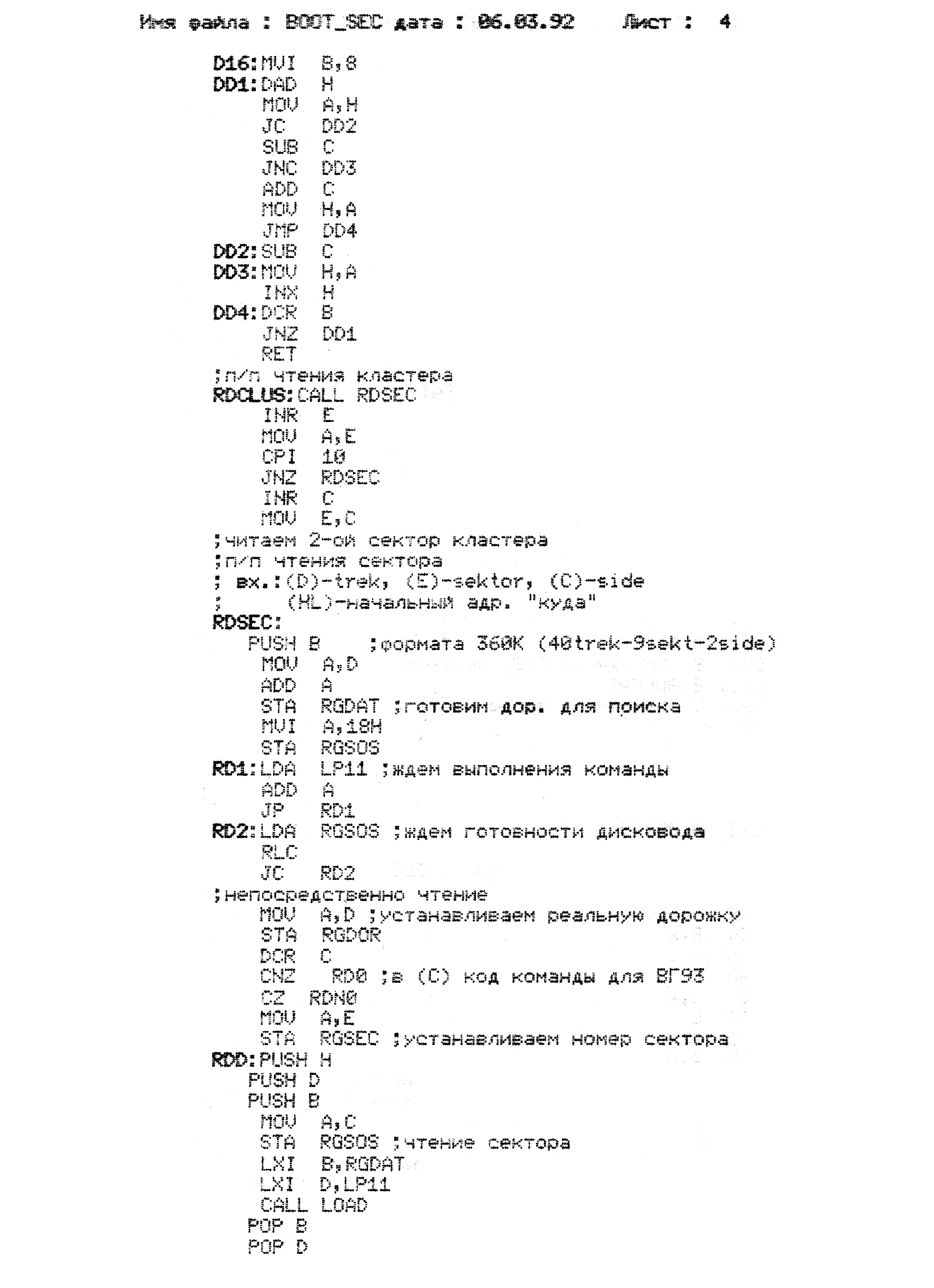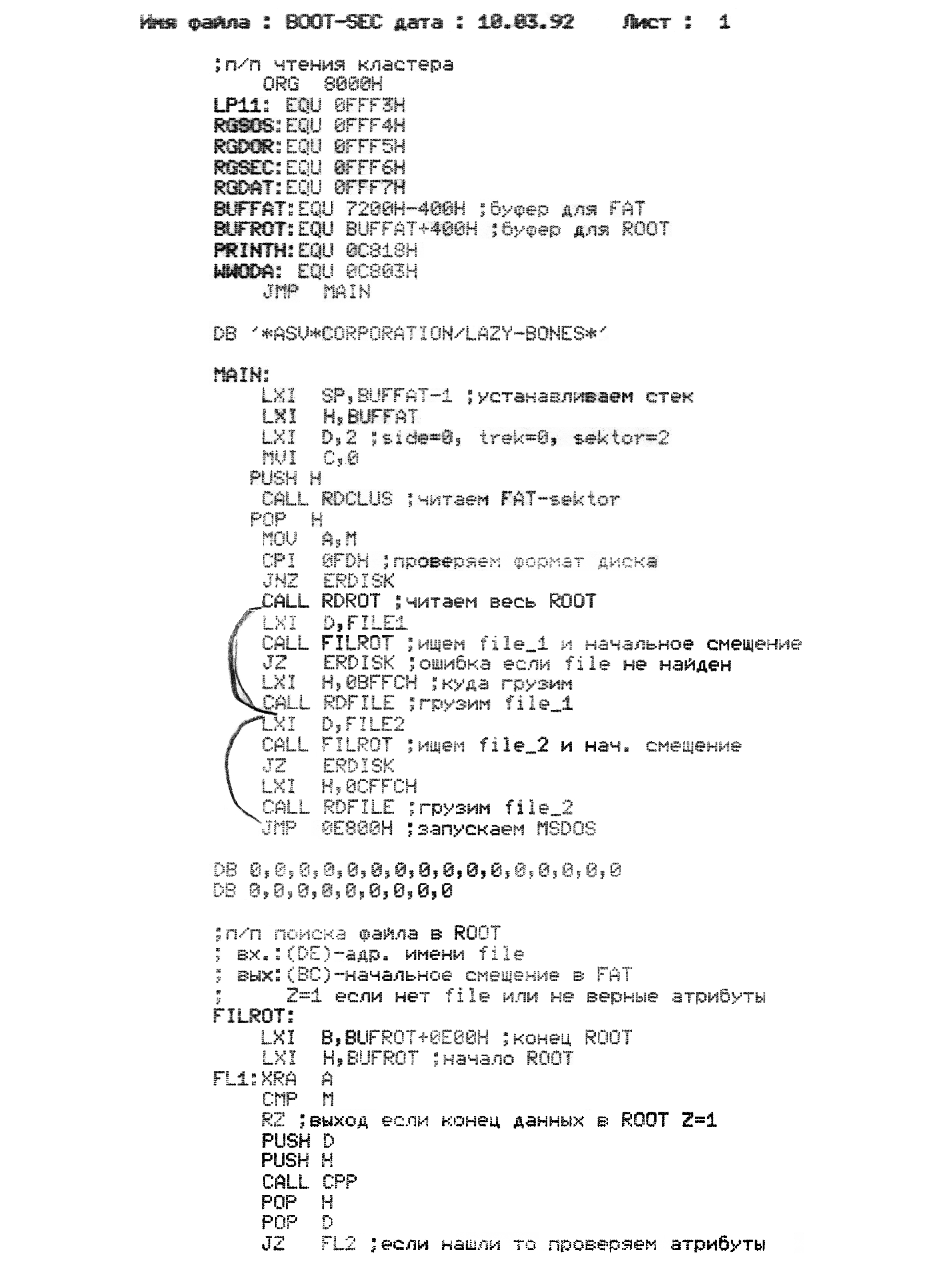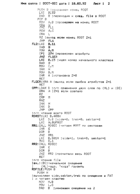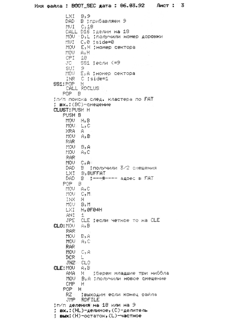 Этот листинг взят из двух распечаток, что можно отследить по датам в заголовках страниц. В распечатке, сделанной 10 марта последние три страницы уже практически нечитаемы. Но их содержимое идентично распечатке, сделанной 6 марта. Поэтому для экономии времени я скомбинировал листинг из разных распечаток.