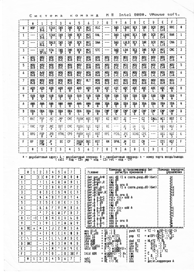 Главная / Цифровая археология / Музей ASV / Справочник команд микропроцессора i8080