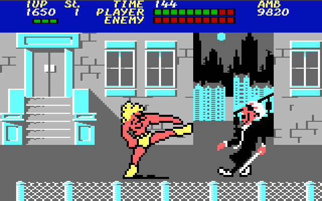 Поскольку кабельная сеть заходила в 410ю аудиторию, решили давать сигнал прямо оттуда. К кабелю в этой аудитории подключаем видеовыход от компьютера Нейрон И9.66 и недолго думая запускаем игру Bad Street Brawler.