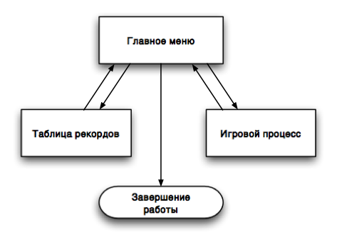 Программа представляет из себя конечный автомат, имеющий следующие состояния и переходы между ними: