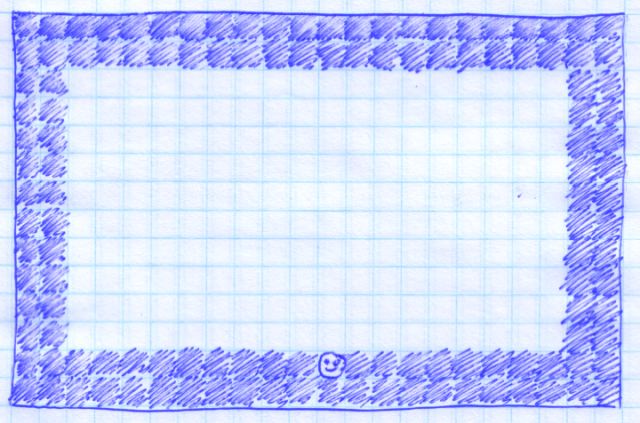 Первоначально поле заполнено только по периметру по две клетки с каждой стороны поля.