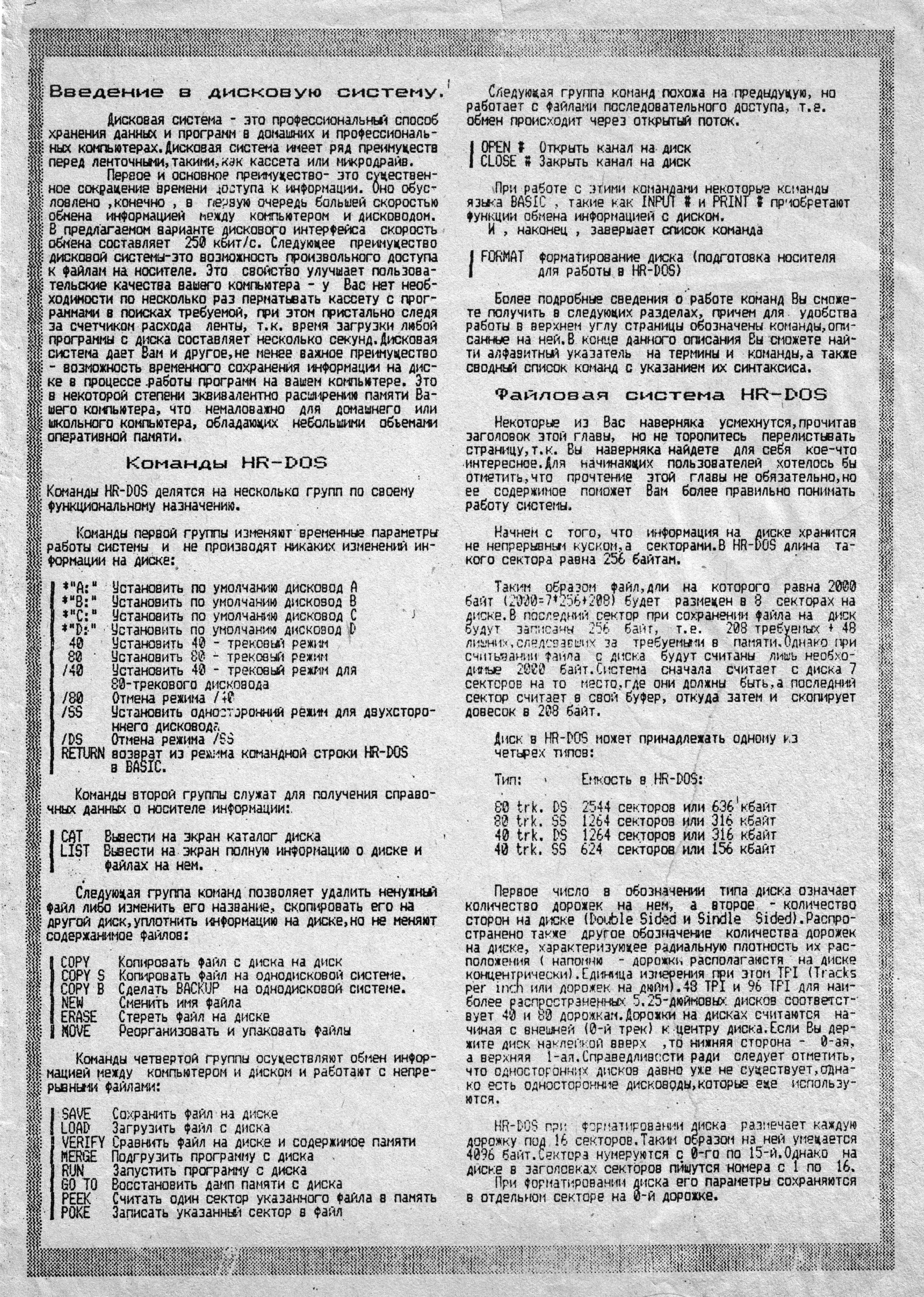 Главная / Цифровая археология / HR-DOS: краткий справочник