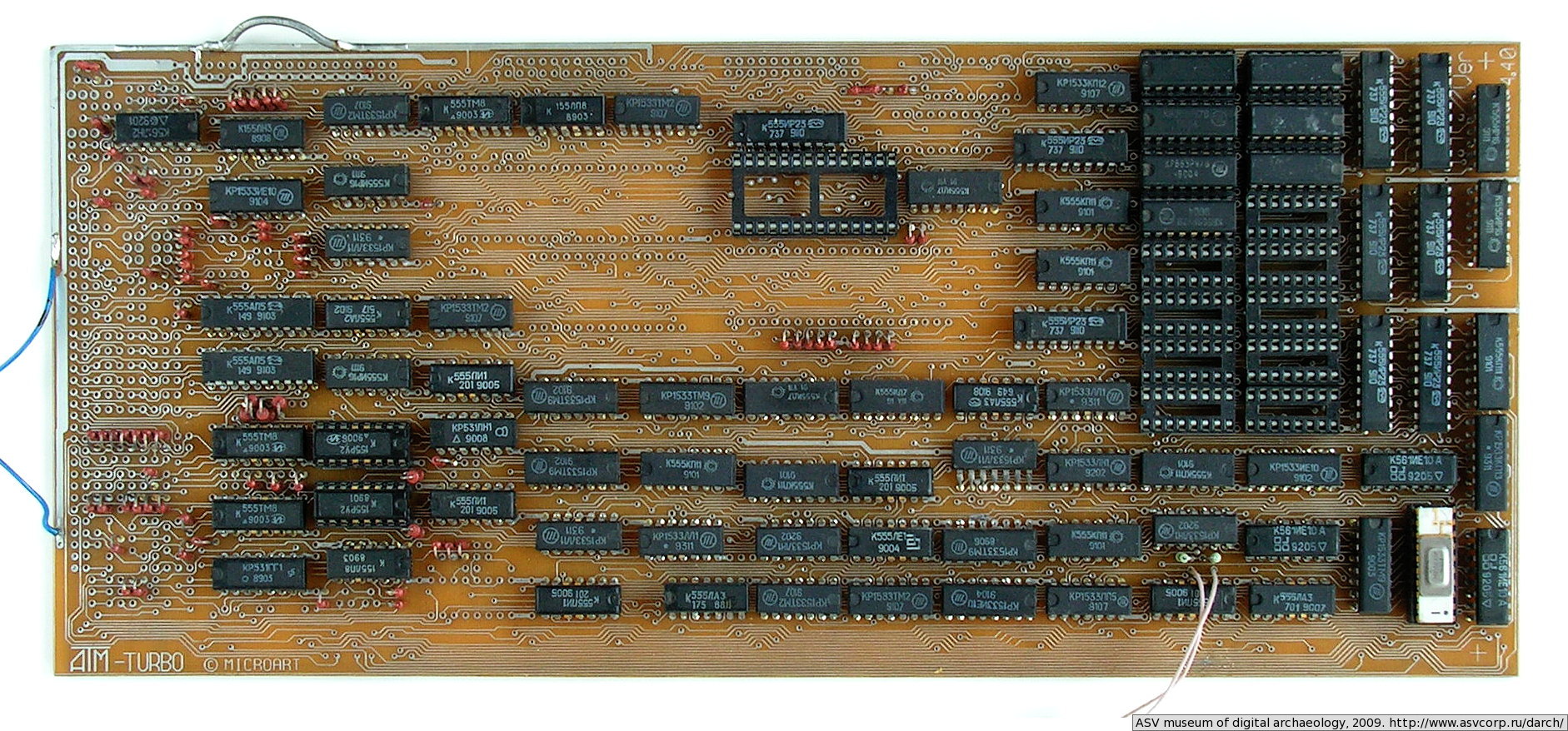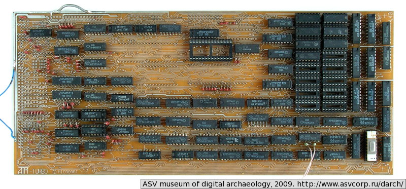 Плата компьютера ATM-Turbo версии 4.40. Монтаж элементов не завершён. Плата хранится в таком виде с 1993 года, но идея собрать этот компьютер не исчезла.