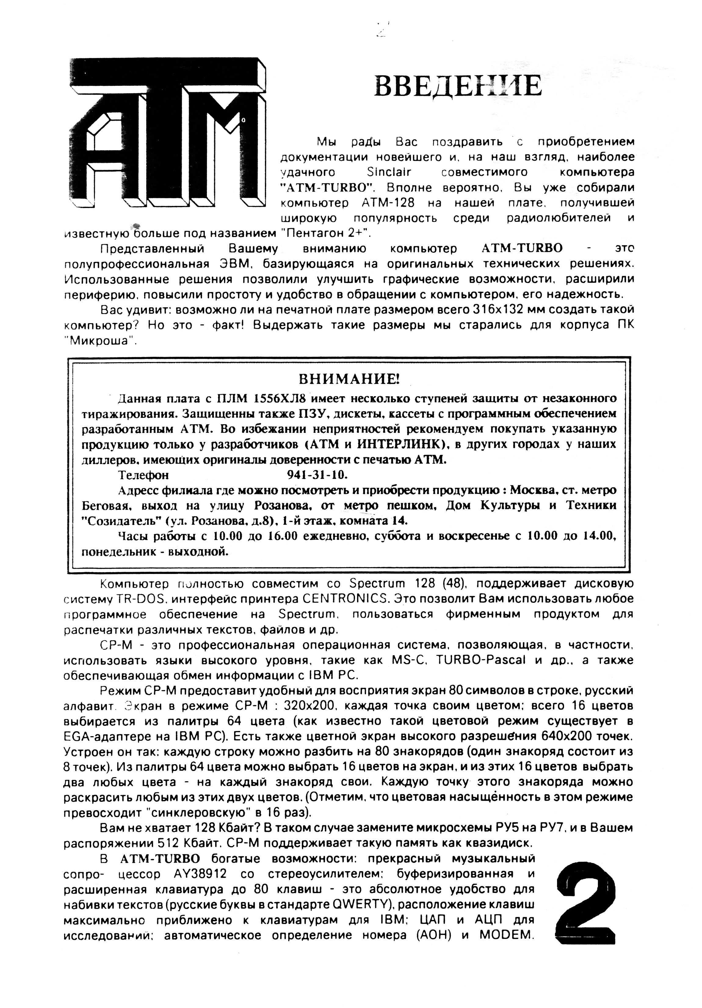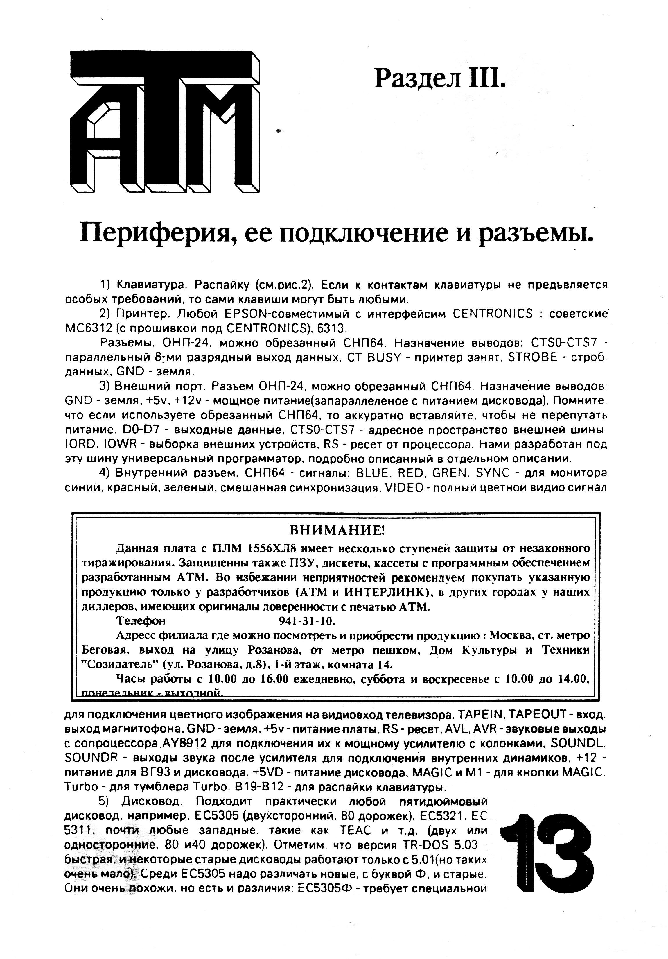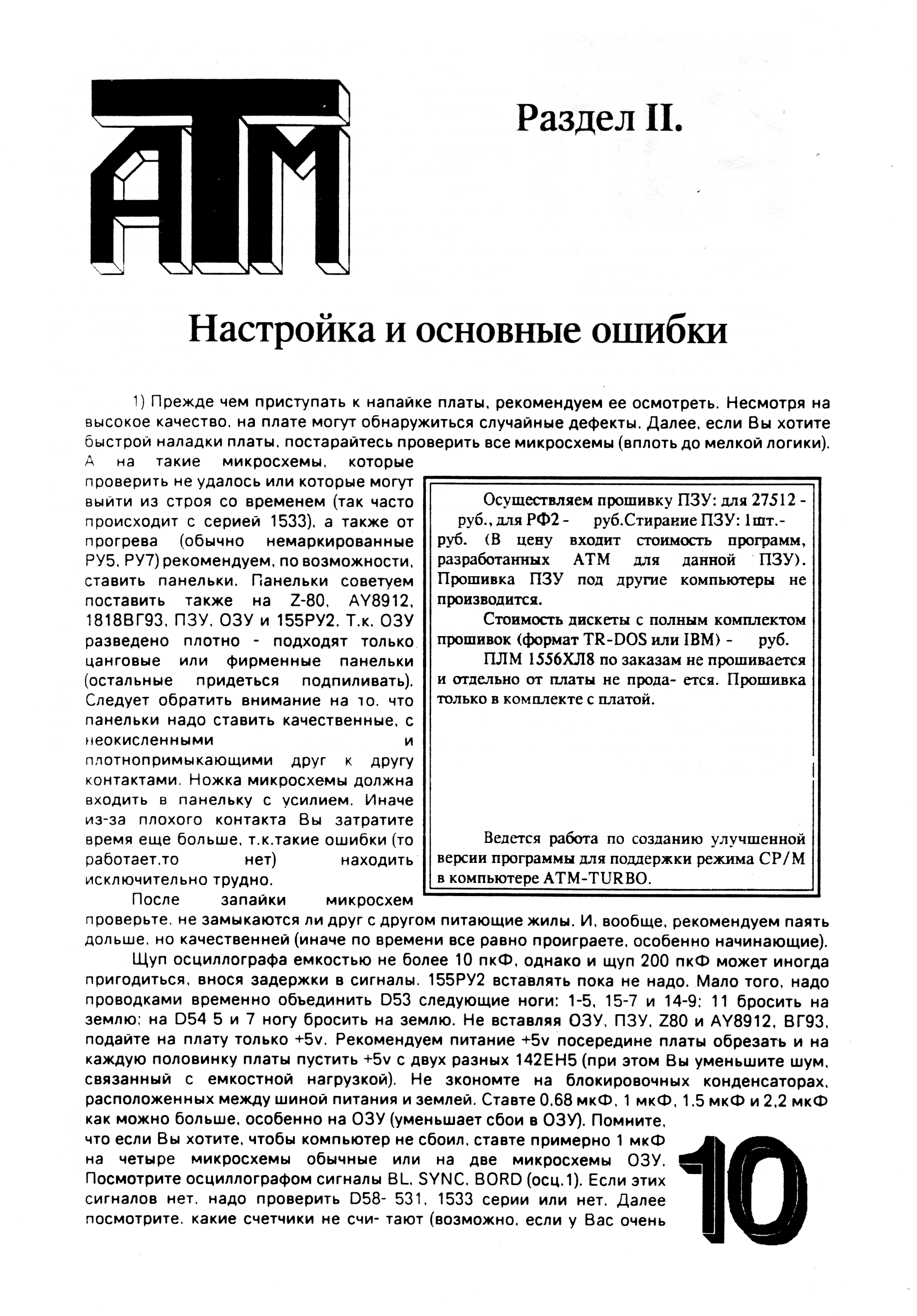 / Инструкция по наладке и описание компьютера ATM-TURBO