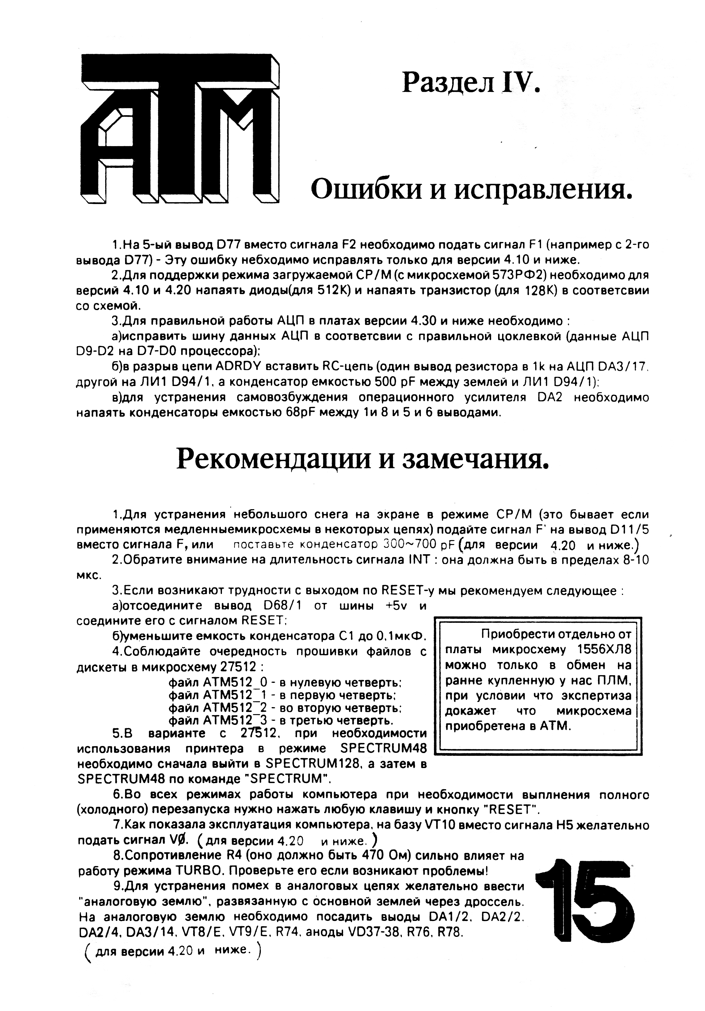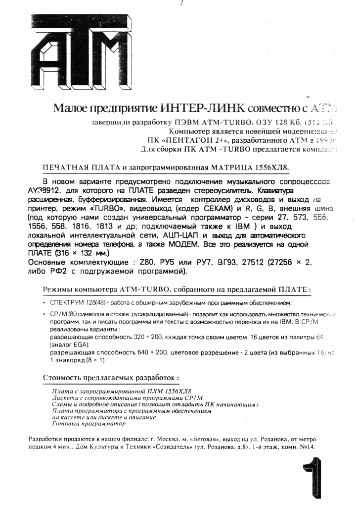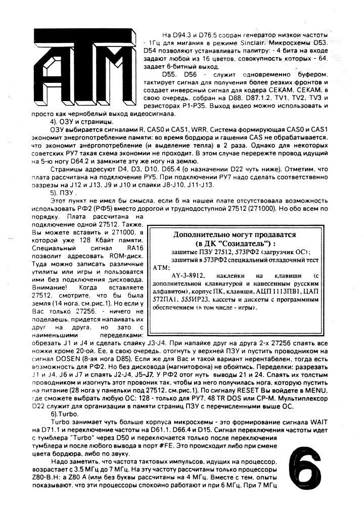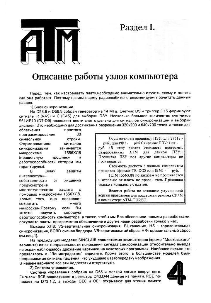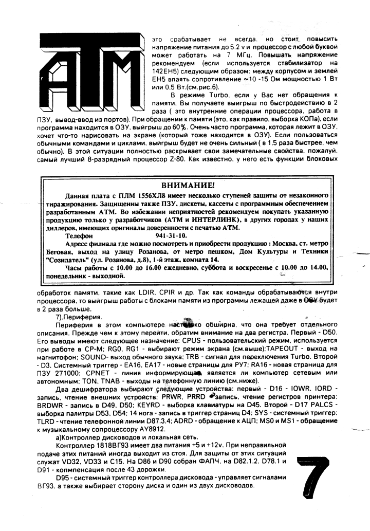 / Инструкция по наладке и описание компьютера ATM-TURBO