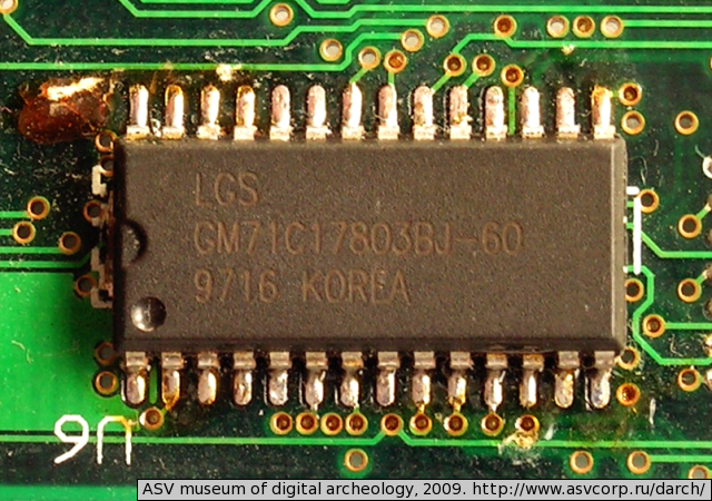 Два модуля по 16 (?) мегабайт на микросхемах GM71C17803BJ-6 :