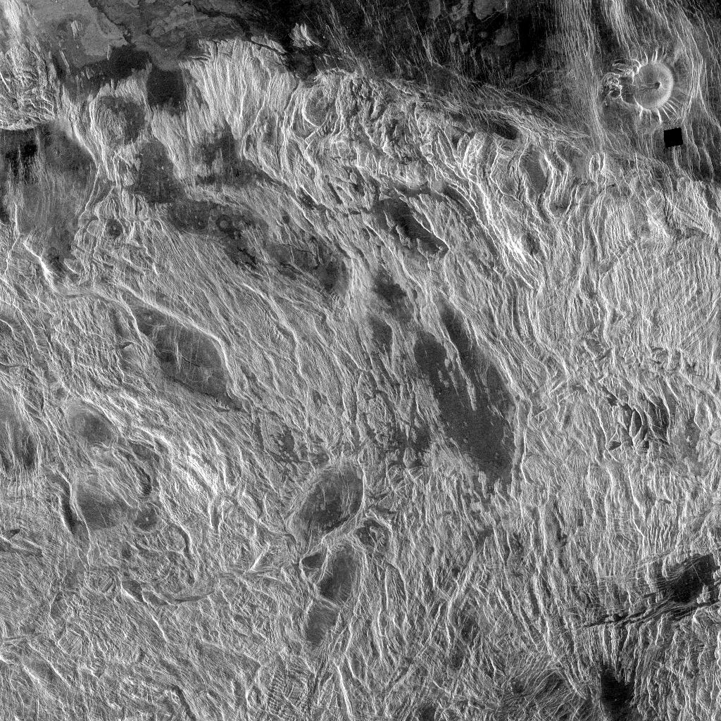 гладких равнинах. Обратите внимание на большой вулкан справа-вверху.