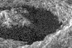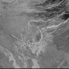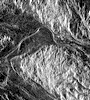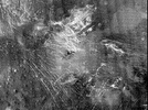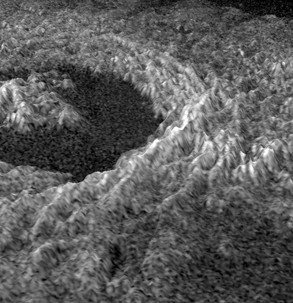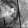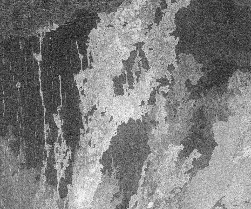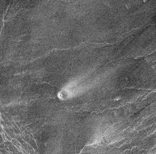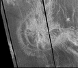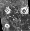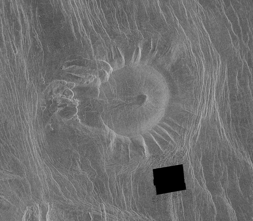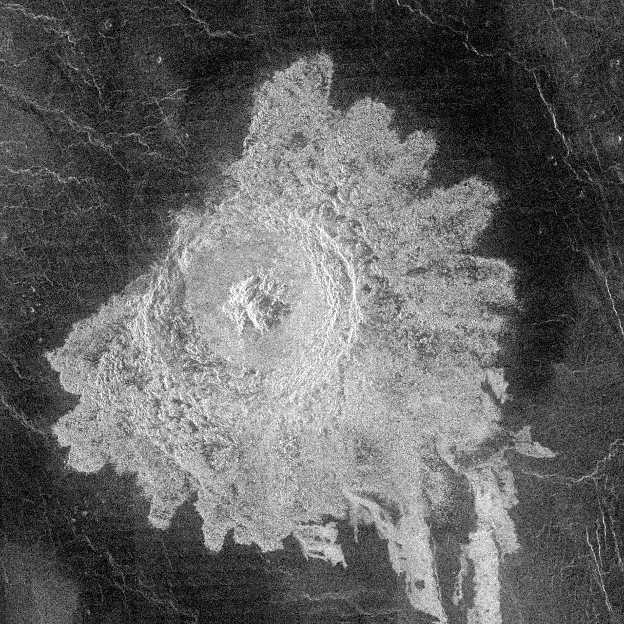 Грубый, ярко отмеченный на радаре выброс окружает периметр кратеров. Видны