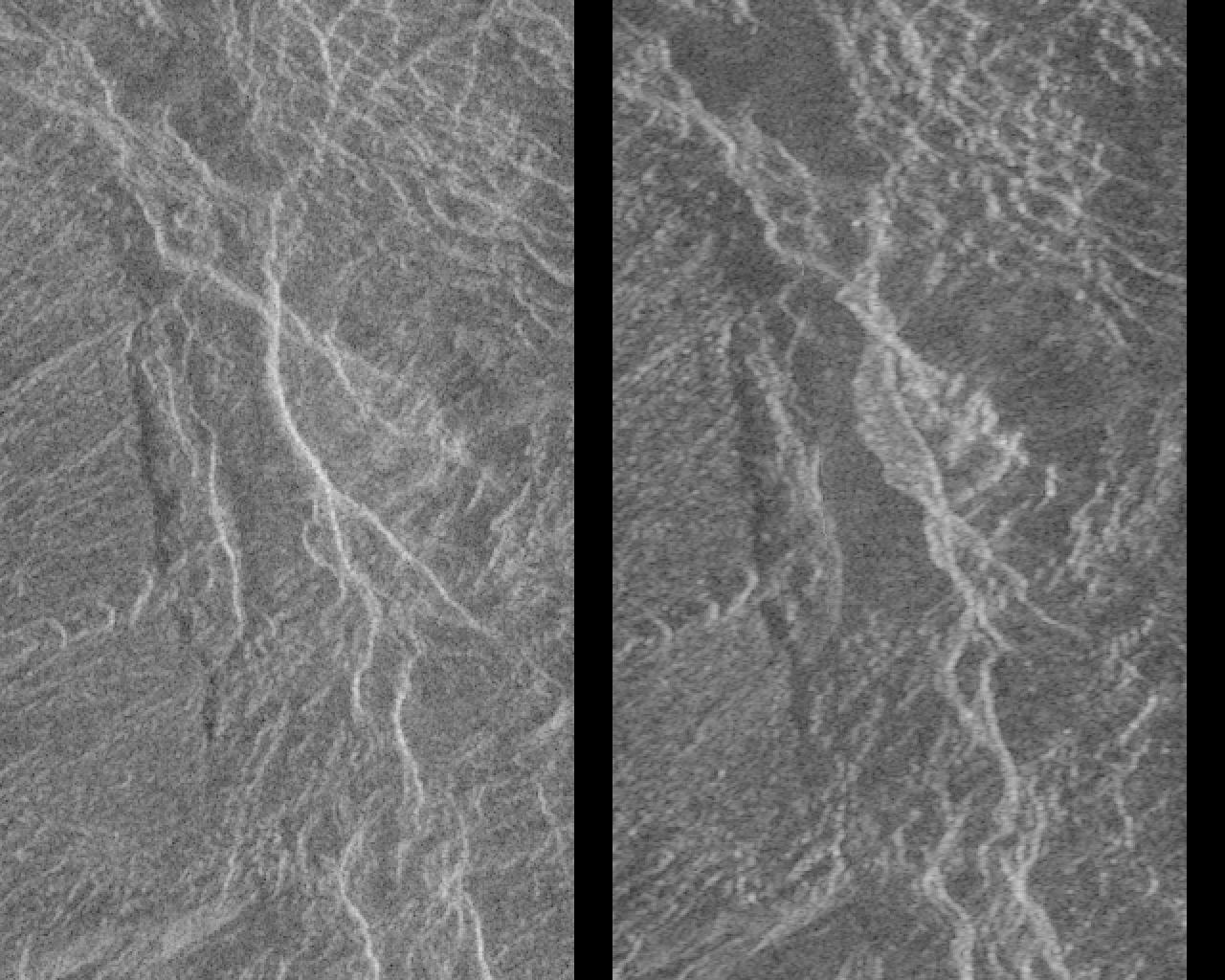 Эти две фотографии показывают регион из Aphrodite Terra. Левое изображение