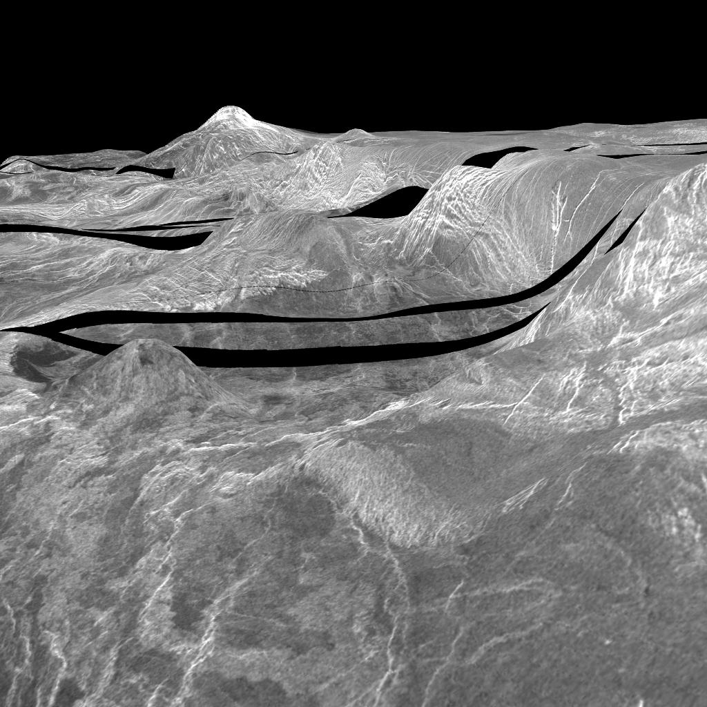 Сложный рельеф Ovda Regio обусловлен долгой историей тектонических