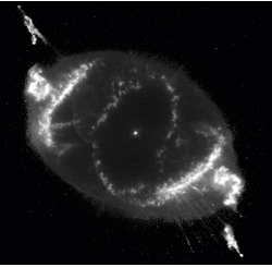 На расстоянии трех тысяч световых лет сбрасывает светящуюся газовую оболочку умирающая звезда. На этом изображении, полученном при помощи телескопа Hubble, видна Cat's Eye Nebula, являющаяся одной из самых сложных известных планетарных туманностей.